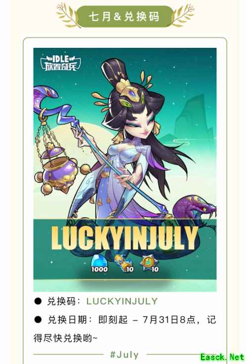 《放置奇兵》2025年7月兑换码分享兑换码:LUCKYINJULY 兑换日期:即刻起-7月31日8点,记得尽快兑换哟~