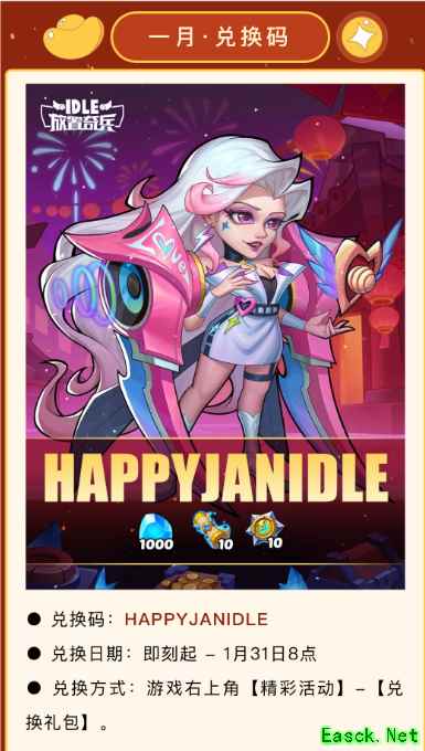 《放置奇兵》2025年兑换码礼包最新分享兑换码: 1、一月兑换码:HAPPYJANIDLE 兑换日期到:2025年 1月31日8点