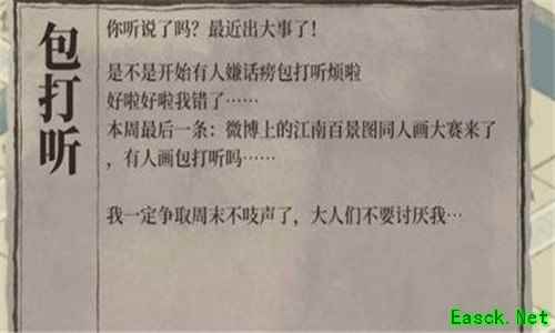 在江南百景图中有非常多的npc,游戏中每个npc都有其存在的价值,有些npc甚至对于玩家来说有非常大的作用。玩家们都喜欢看npc的各种互动,不少玩家都注意到包打听这个人物,接下来小编就带大家看看这个npc的作用,感兴趣的小伙伴一定要看。