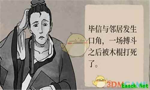 2、薛托托吃了假道士给的增寿丹丸,一命呜呼; 3、杜溢在郊外采到好多鲜红的蘑菇,饱餐一顿后再也没有醒来; 4、雷雨天,廉绮丽手持一根铁棒在旷野里奔跑,不幸被雷劈中; 5、路进在河边散步时,不慎跌入河中淹死了; 6、毛大悟发誓若说谎就五马分尸,结果他真的死于车裂; 7、和西西被五步蛇咬了后坚持步行去医馆,最终倒在了第六步上; 8、梅大夏过马路时没有遵守交通规则,被飞驰的马车撞死了; 9、茅大师上山砍柴遇到山贼,被劫财劫色最后残忍杀害; 10、昝细崽偶遇仙人指点,得道飞升,驾鹤西去; 11、苏楚楚与邻居发生口角,一场搏斗之后被木棍打死了。