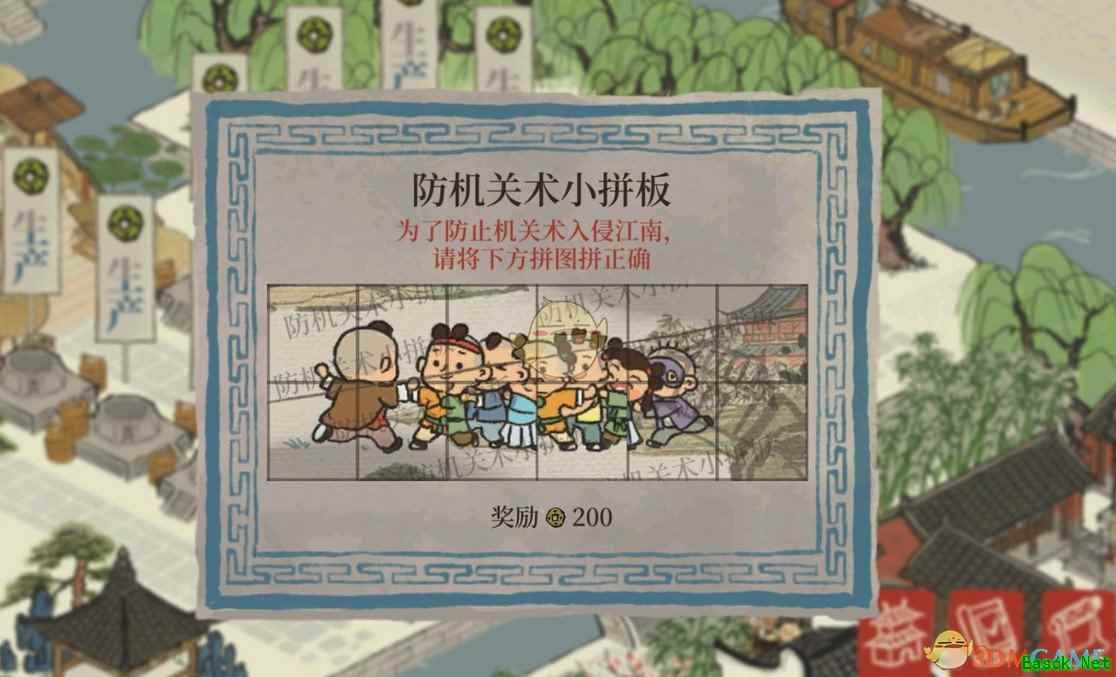 《江南百景图》防机关术小拼版介绍很多玩家在更新后发现不能用水井刷钱了,因为现在循环时必出一个拼图。 一、小拼版介绍 1、这是游戏最新增的一个防止脚本的功能。 2、对于水井刷钱的玩家而言,不能挂机了,而且必须将拼图完成才能进行下一步。 3、虽然拼图并不复杂,但是这个机制让挂机刷钱的玩家不能再继续进行。