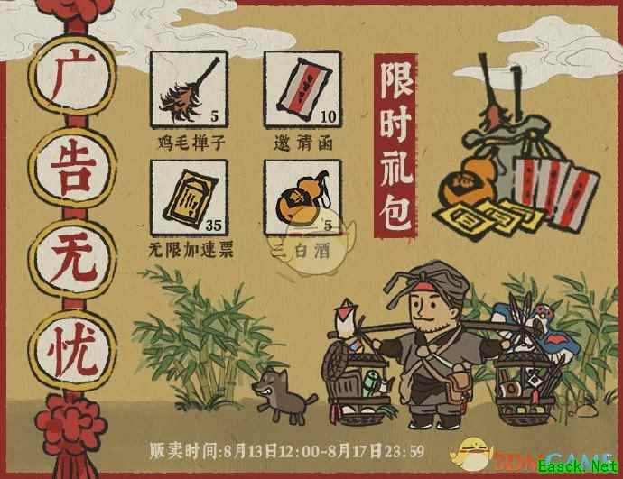 广告无忧礼包上线时间介绍: 一、上线时间 2020年8月13日12:00—2020年8月17日23:59