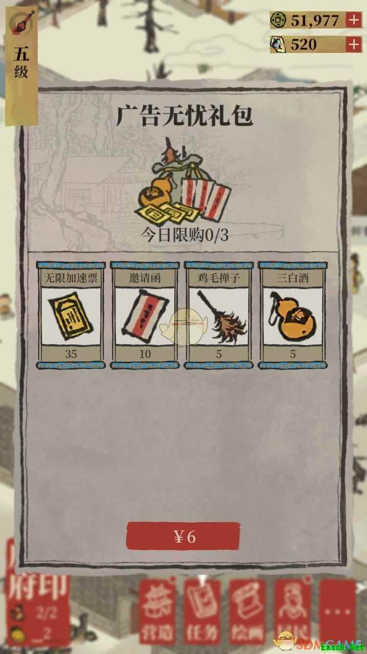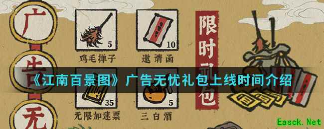 可以增加50点体力。 以上就是小编整理的江南百景图广告无忧礼包上线时间介绍,想知道更多相关资讯攻略的请关注手游网。 |