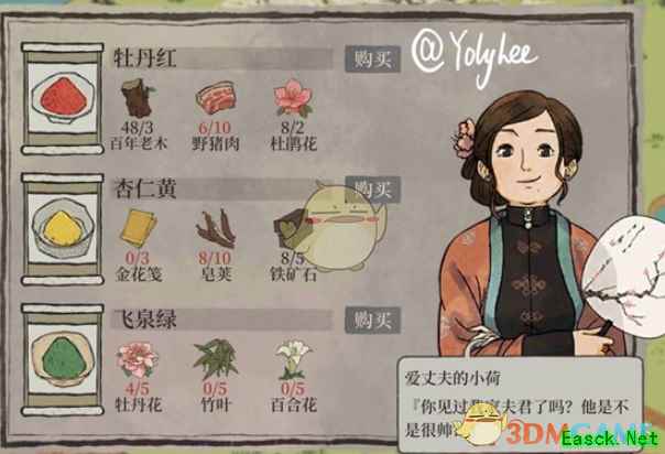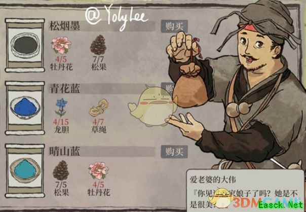 解锁该区域前需要跟“李宝家的”兑换卦象 12、颜料