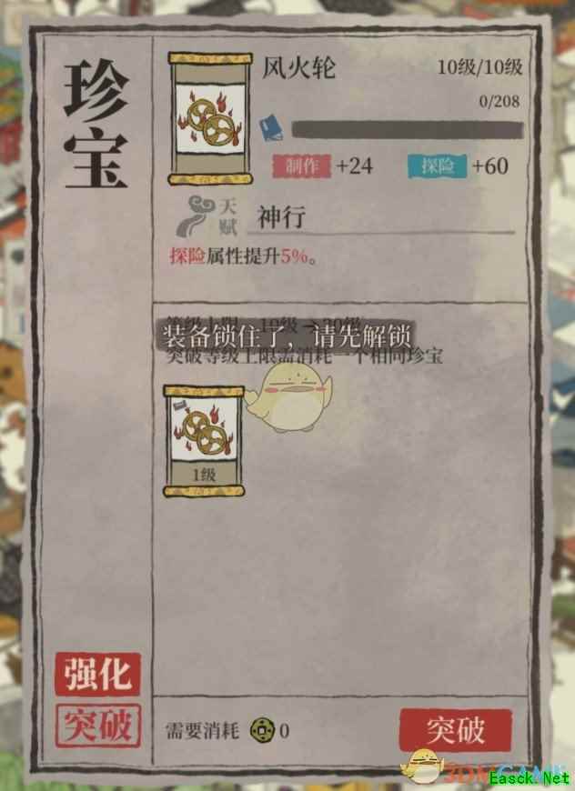 风火轮解锁方法介绍: 打开包裹,打开珍宝那栏,找到这个珍宝,点开,再点这个锁,就解开了。 以上就是小编整理的江南百景图风火轮解锁方法介绍,想知道更多相关资讯攻略的请关注手游网。 |