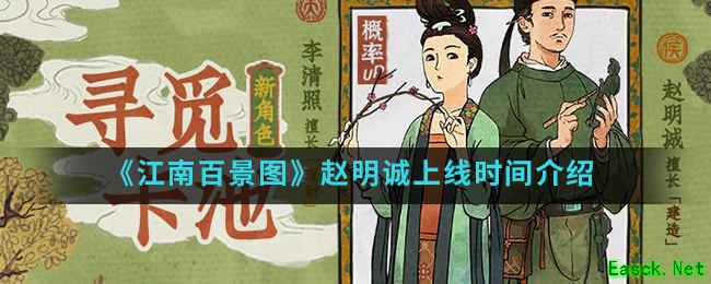 在江南百景图手游中赵明诚什么时候上线呢?为了庆祝国庆中秋佳节游戏上线了一个新角色赵明诚,那么具体哪天上线呢?想知道的小伙伴就跟随小编一起来看看吧。