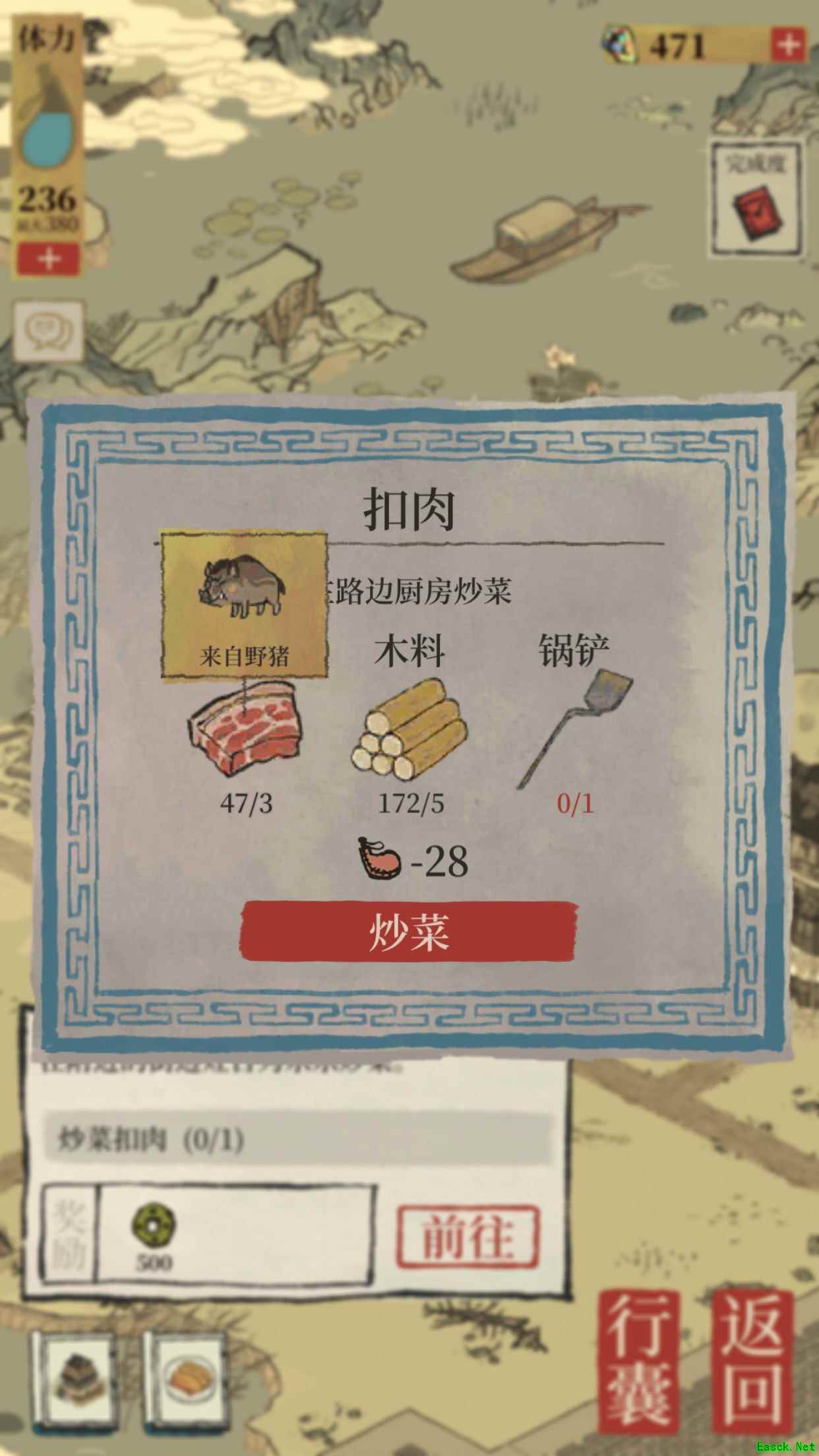 4、炒菜的猪肉需要抓野猪,木料砍几棵树就可以。
