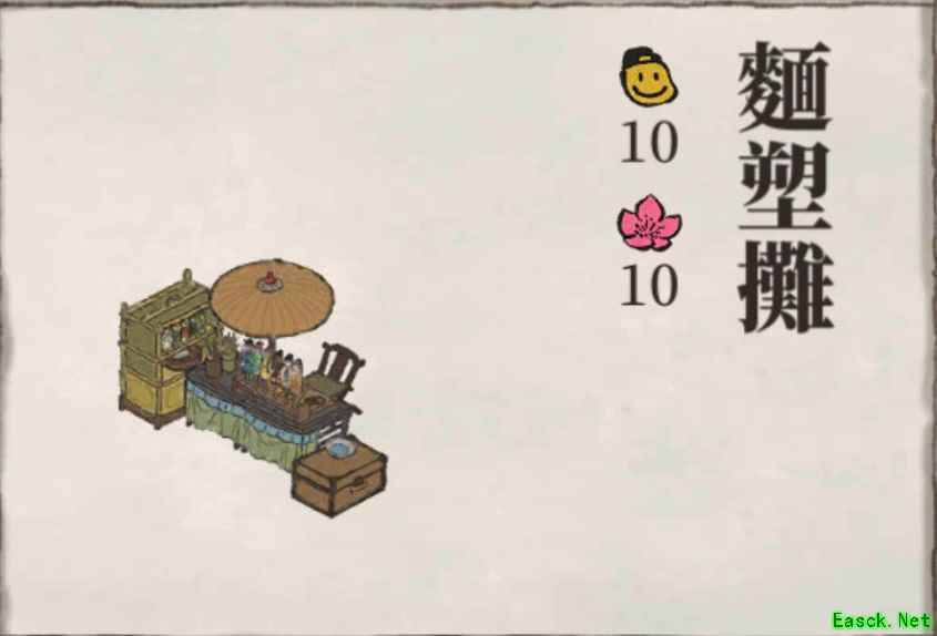 面塑摊获得方法介绍: 一、获得方法 花费:一个特殊居民,300铜钱,1个春笋,10分钟 二、解锁等级 30级