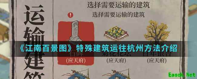 在江南百景图手游中特殊建筑怎么运往杭州呢?特殊建筑在游戏中可以运输了,刚开的杭州府就可以,那么怎么运输到杭州呢?想知道特殊建筑运往杭州方法的就一起来看看吧。