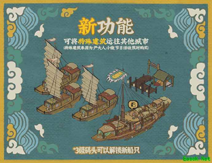 二、解锁方法 1、运输码头需要升至3级; 2、只可以运输特殊建筑。 特殊建筑来源包括: 严大人获得,小偷审讯获得,节日活动获得,限时购买获得;