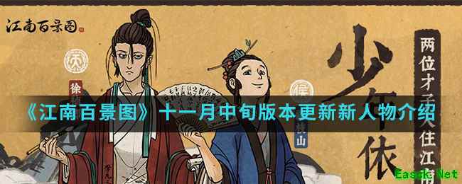 在江南百景图手游中十一月中旬版本更新上线了什么人物呢?在即将到来的版本更新中会有两位才子即将入住江南小镇,少年依旧!那么想知道具体是谁的就跟随小编一起来看看吧。