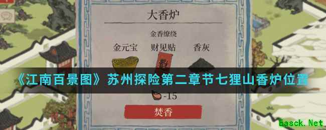 以上就是小编整理的江南百景图苏州探险第二章节七狸山香炉位置介绍,想知道更多相关资讯攻略的请关注手游网。 |