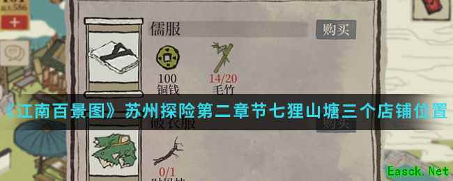 《江南百景图》苏州探险第二章节七狸山塘三个店铺位置介绍