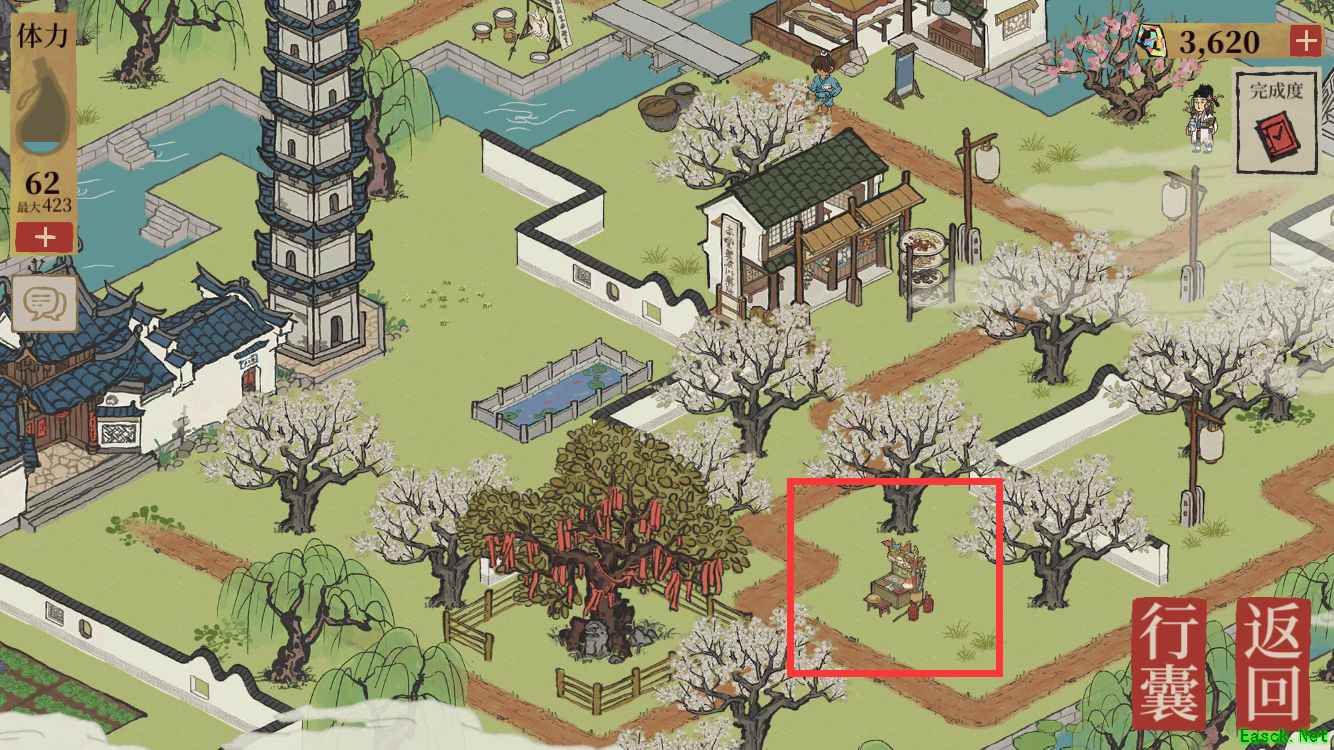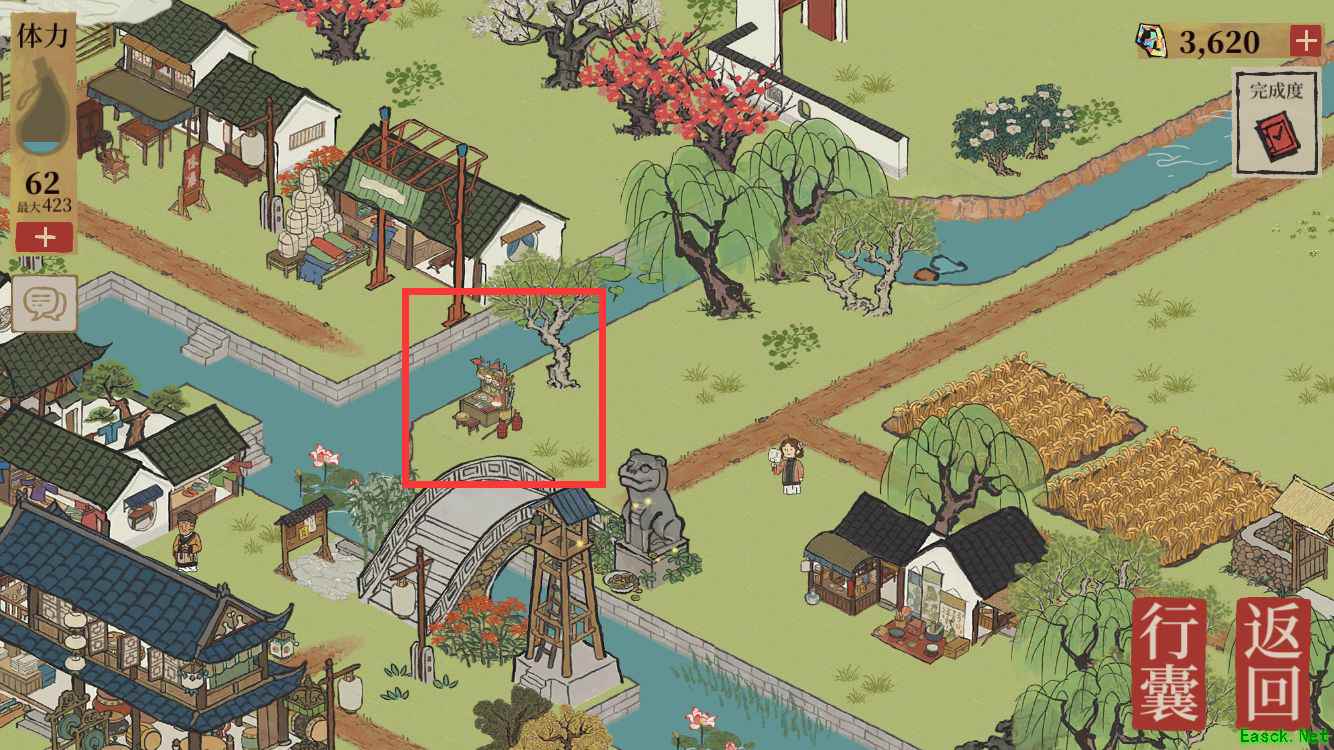 《江南百景图》小风车获得方法介绍一、获得方法 1、玩家可以在玩具摊那里获得。 二、花费 铜钱*150,体力-10。 三、玩具摊 1、玩具摊就在通贵狸的左边。