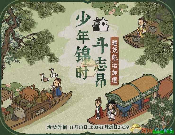 活动时间:11月13日13:00—11月24日23:59 全速前进~活动期间内建筑航运加速! 【才子卡池】