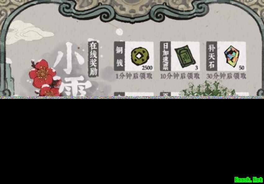 《江南百景图》小雪签到活动介绍一、活动预告 小雪在线签到活动11月22日开启 11月22日13:00起,小雪时节在线奖励来啦~ 参与即可领取补天石、金画轴等小礼! 二、活动时间 11月22日13:00至11月24日23:59分 三、活动方式 活动开启1分钟后即可领取【铜钱*2500】; 距离首次领取10分钟后,即可领取【日加速票*3】; 距离上次领取30分钟后,即可领取【补天石*50】; 距离上次领取1小时后,即可领取【金矿锭*2】; 距离上次领取3小时后,即可领取【百合花坛*1】; 距离上次领取5小时后,即可领取【邀请函*5】; 距离上次领取12小时后,即可领取【金画轴*1】;