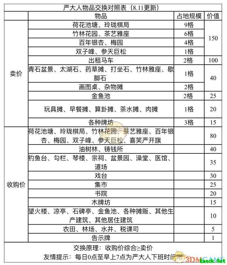 《江南百景图》馒头摊兑换方法一、兑换方式 严大人处兑换 二、严大人可兑换物品一览
