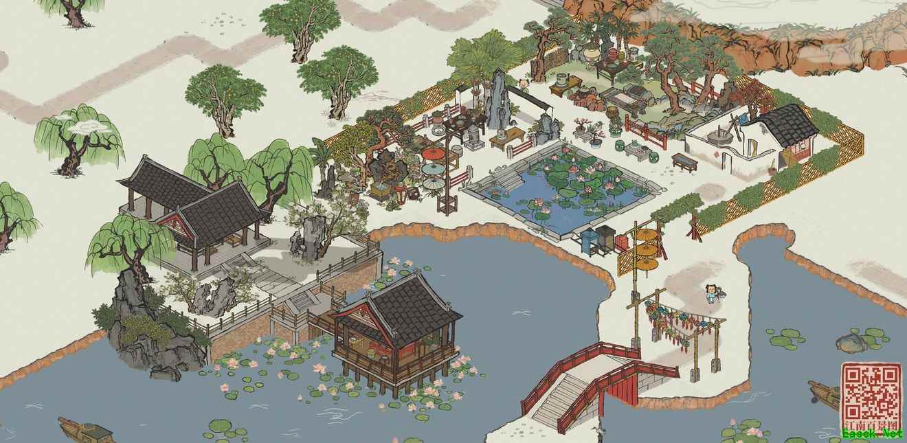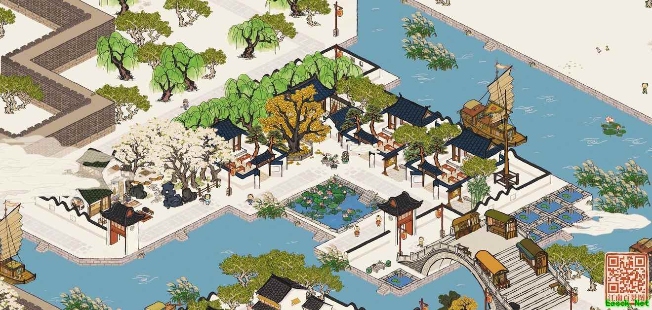 官府没有做改动,油树林+荷花池塘作为主体,配了马车和轿子作为出行工具,小花园和休憩桌作为点缀 布局三 易安室