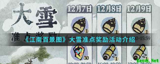 在江南百景图手游中大雪准点奖励活动有什么内容呢?“大雪准点奖励”和“资源兑换活动”即将开启!,最早的将在下去一点开启,那么想知道大雪准点奖励活动的就跟随小编一起来看看吧。