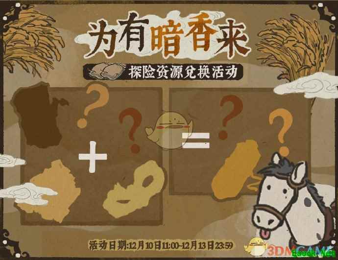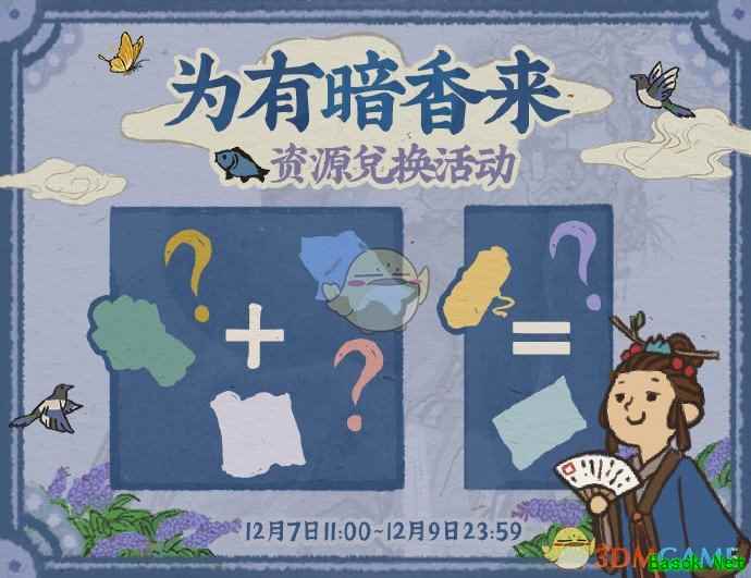 《江南百景图》为有暗香来活动介绍一、活动时间 12月7日11:00~12月9日 23:59 二、活动内容 1、资源兑换活动 玩家在活动期间收集指定的生产类资源可以兑换奖励。