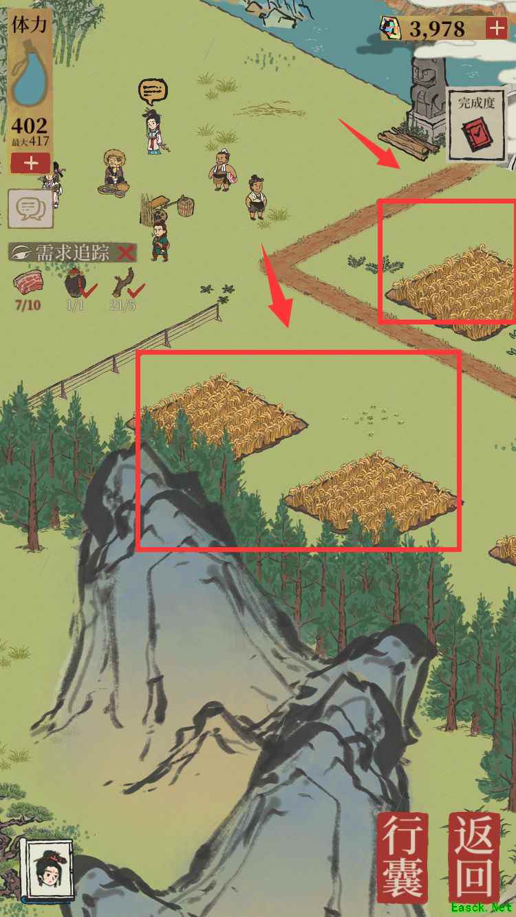二、兑换材料 铜钱*500、水稻*5、竹叶*5。 水稻在贾富贵前面有一片水稻田可以获取。 竹叶在贾富贵的后面有一片竹林可以获取。