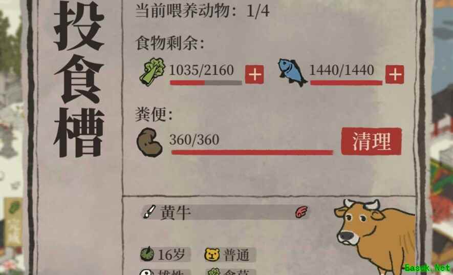 投食槽各等级属性 1、食槽变化 蔬菜 1080(一级) 2160(二级) 3600(三级) 6480(四级) 肉类 720(一级) 1440(二级) 2400(三级) 4320(四级) 2、粪便容量 180(一级) 360(二级) 600(三级) 1080(四级) 3、动物容量 3只(一级) 4只(二级) 5只(三级) 6只(四级)