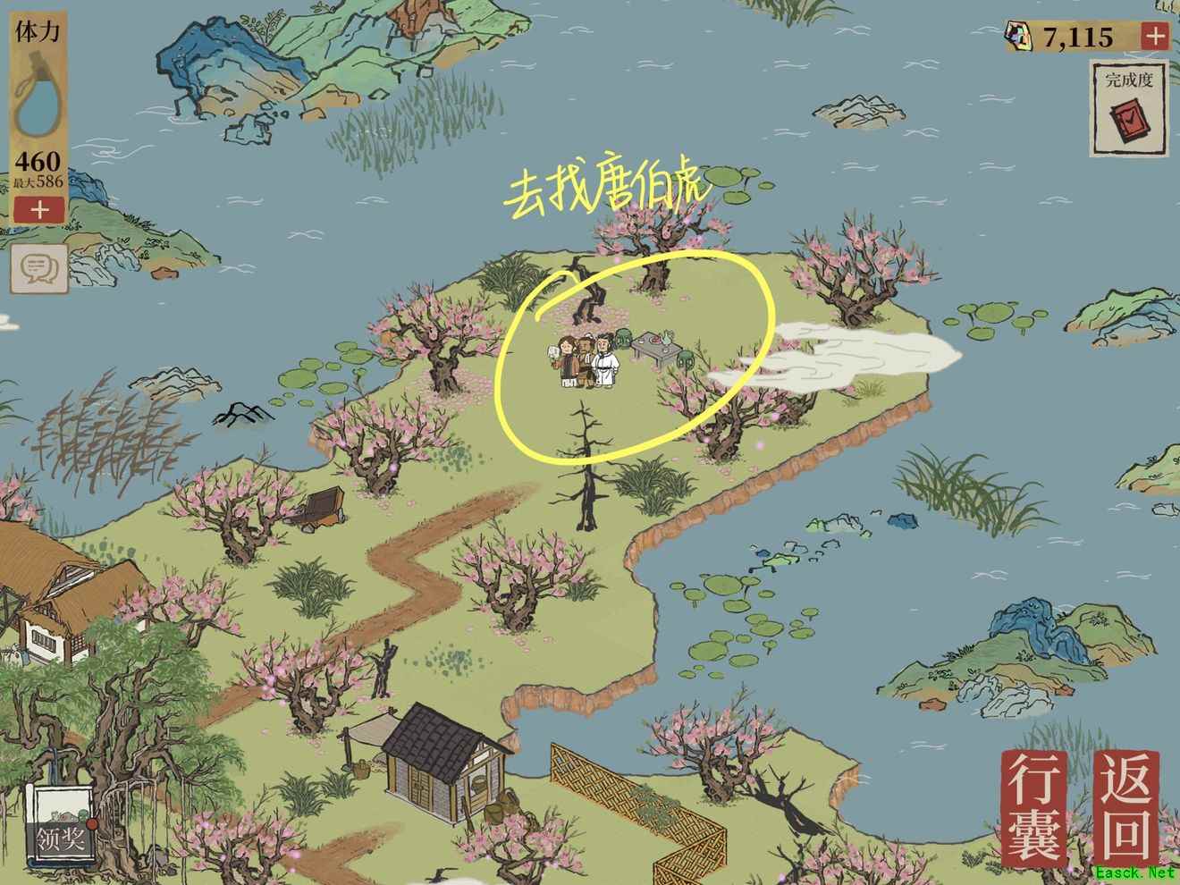 与回忆里的唐伯虎对话,点击旁边的去年桃花,花开纷飞,任务结束。