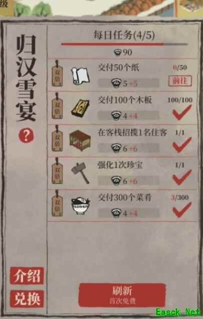 归汉雪宴放错位置解决办法说明1、如果玩家放错归汉雪宴的位置可以在编辑模式下,点击修改就可以了; 2、归汉雪宴新建筑务必放在应天府当中,这样后期的任务才能正常完成; 3、目前任务已经开始刷新,大家可以在自己闲余的时间完成任务,在活动时间内放灯就可以; 4、可以刷新任务3次免费/1000铜钱/500蔬菜,前2次10个任务有双倍奖励每波奖励区间为20~30汤圆