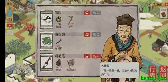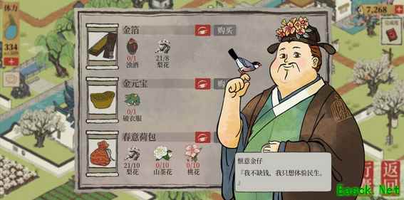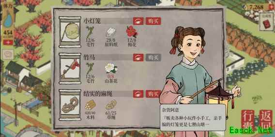 2、【七狸山塘】 店铺售卖:儒服、破衣服、鸡毛笔;小灯笼、竹马、结实的麻绳;金箔、金元宝、春意荷包。 桑树、枫树、柳树、山茶树、毛竹林、梅花树、梨树、桃花树、枯树、松树 花丛 稻田、农田、棉花田 黑石、丑石、大石 纸浆池 店铺1(成衣店)