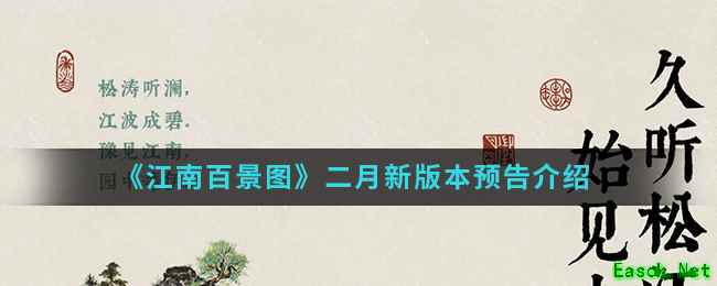 在江南百景图手游中二月新版本是什么呢?一月不剩下几天了,二月游戏中会上线新的版本,新版本中会更新新城市,那么想知道二月城市的就一起来看看吧。