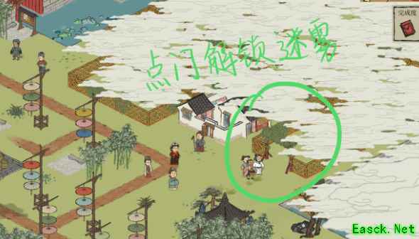 《江南百景图》俏姐家后花园位置介绍俏姐家后花园位置:在浓雾中,需要点击篱笆门进行驱散迷雾。 1、任务要求我们采集绣球花、牵牛花,我们需要一扇一扇的打开篱笆门就能驱散迷雾了。