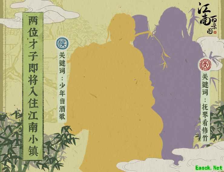 江南百景图官方最近上线了一张新角色海报抚琴看修竹,很多小伙伴都很想知道这个海报对应的角色是谁,今天小编给大家带来了《江南百景图》抚琴看修竹角色猜想介绍,感兴趣的小伙伴一起来看看吧。 >>>>少年当酒歌角色猜想介绍