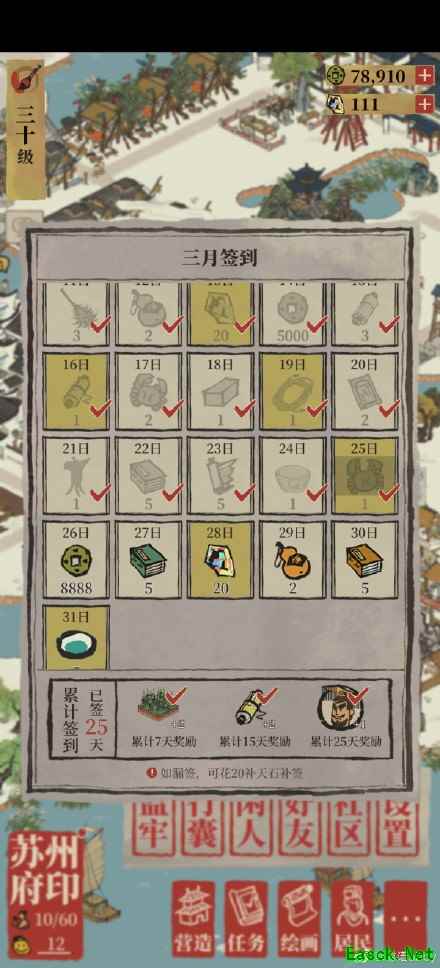 三月签到嬴政怀里是小老虎,二月范仲淹牵着牛,四月周瑜抱着兔子,看来每个月签到给的闲人对应各自顺序的十二生肖吧。 连续打卡25天后领取到嬴政奖励。 以上就是小编给大家带来的《江南百景图》签到25天嬴政介绍,更多手游攻略请关注手游网! 本文内容来源于互联网,如有侵权请联系删除。 |
