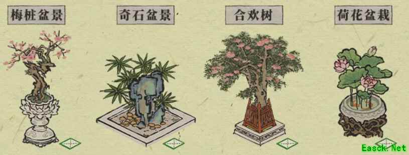 3、盐商特供装饰 盐商定制:将盐引商人提升至三级,即可解锁装饰采购功能。 特供装饰:新增装饰「荷花盆栽」「梅桩盆景」 [ 奇石盆景」r 合欢树」,可通过盐商 「黄莹」消耗盐引进行采购。