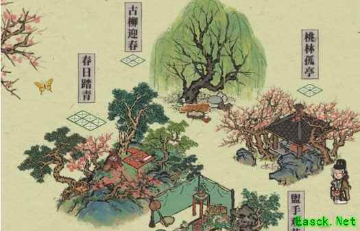 二、新增建筑 1、严大人春季限定 桃柳争春,观花踏青。严大人全新建筑即将登场。 建筑上新:严大人新增建筑「古柳迎春」「桃林孤亭」「盥手观花」「春日踏青」