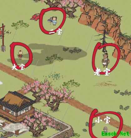 《江南百景图》鯉鱼风筝位置介绍位置 大宝/毽子:大宝位置如图所示,毽子花费野鸡羽毛×5、体力下35; 二宝/风筝:二宝位置如图所示,风筝花费兔子毛×5、体力×35; 小宝/面具:小宝位置如图所示,面具花费野兽骨头×5、体力×35; 老宝/鱼汤:老宝位置如图所示,鱼汤花费青鱼×3、鲤鱼×2、体力×35。