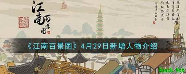 江南百景图手游中在4月29日即将迎来一波更新,更新后会新增四位人物,相信还有很多小伙伴想要知道4月29日新增了哪些人物,下面小编给大家带来江南百景图4月29日新增人物介绍,感兴趣的小伙伴们一起来看看吧。