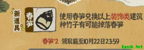 途径二:免费领取 1、杭州版本更新后,官方会免费发放2个春笋。 2、玩家可以到邮件中去领取,记得要及时领取,否则邮件就失效了。