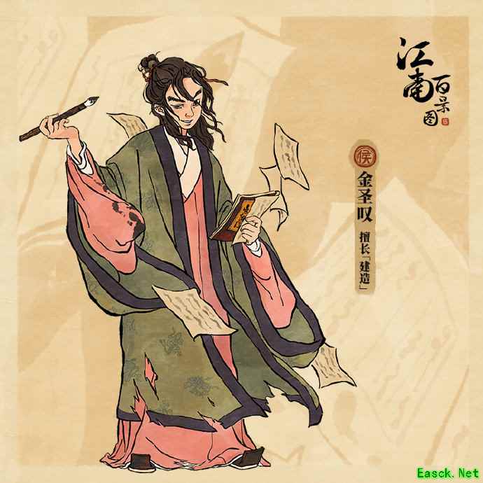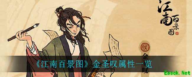 江南百景图中我们可以在五一期间获得候级居民金圣叹,很多小伙伴都很想知道金圣叹这个人物的属性是什么,今天小编给大家带来了《江南百景图》金圣叹属性一览,感兴趣的小伙伴一起来看看吧,希望可以帮助到大家。
