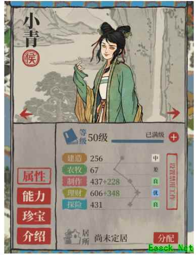 《江南百景图》小青人物介绍一、属性 建造:256 农牧:67 制作:437 理财:606 探险:431 二、天赋 灵动 负责理财工作时,所需工人+1,但收入提升10%。