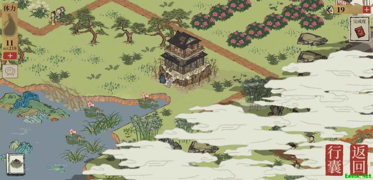 《江南百景图》竹叶位置介绍一、竹叶获取位置 1、竹叶在应天府探险-秦淮河畔-女娲画院-竹林中获得。 2、来到破败的女娲画院,就是下图中长草的建筑,边上有一片未经开发的竹林。 3、用松烟墨颜料来修复女娲画院,就可以解锁开发竹林了。
