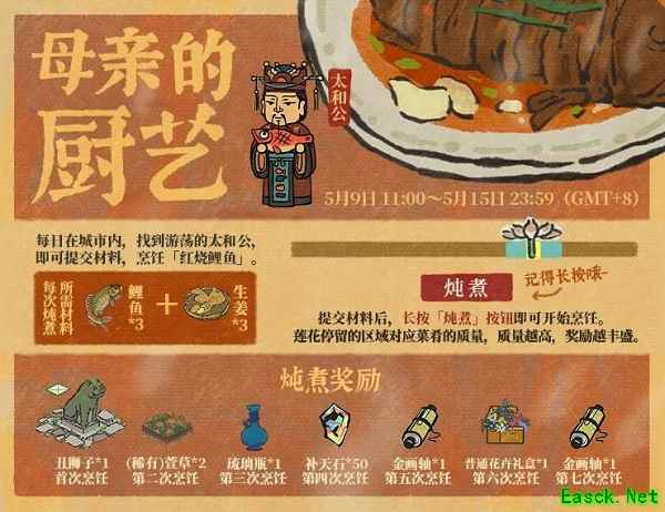 生姜来源于应天府客栈,完成客人订单有几率给生姜。 一共需要鲤鱼生姜各3×7=21件。 每日在城市内,找到游荡的太和供,即可提交材料,烹饪红烧鲤鱼。 提交材料后,长安炖煮按钮即可开始烹饪。 莲花停留的区域对应材料的质量,质量越高,奖励越丰盛。 以上就是小编给大家带来的《江南百景图》生姜获得方法,更多手游攻略请关注手游网! 本文内容来源于互联网,如有侵权请联系删除。 |