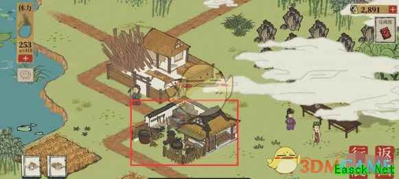 3、跟白居易进行对话 4、修理湖边断桥(木料*20) 5、把晒在外面的藕收起来(荷叶*5) 6、获得2个木桶(木料*10,铁钉*6)