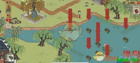 8、取水 9、将工具放在晒藕桌上 10、捣藕磨浆(小游戏) 11、过滤藕粉 12、跟何叔进行对话 13、拯救落水的十里(小游戏) 14、跟白居易进行对话 15、想办法让吴飘香脱困