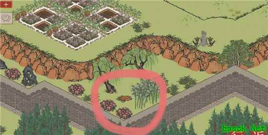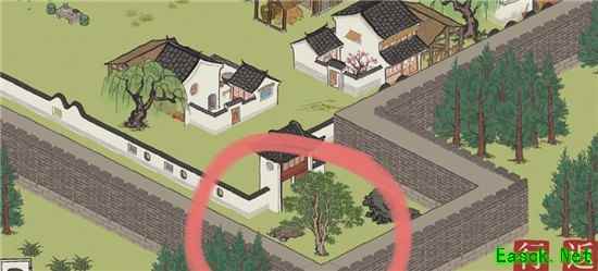 3、如图,地图的角落中,在一棵树与一个石头附近的围墙门口。