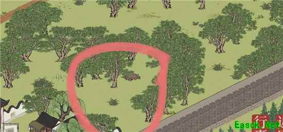 2、如图接近地图下面树林的位置,需要仔细查找。