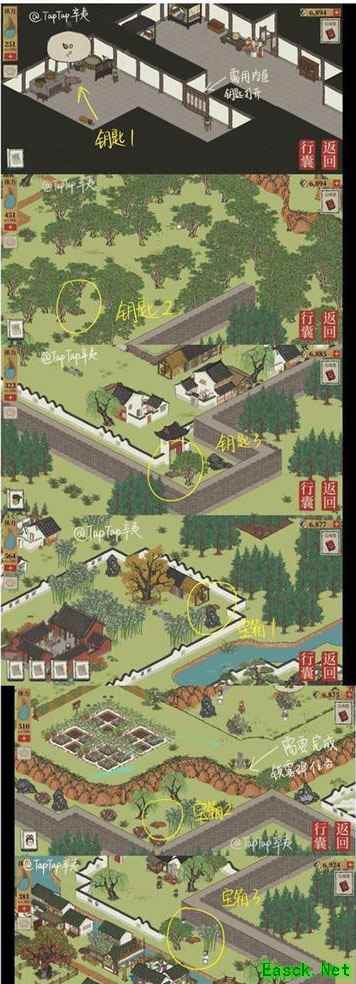 《江南百景图》杭州探险第三章宝箱位置介绍钥匙1 小蛮的家里 钥匙2 桂海寻孤附近 钥匙3 烧饼李的家附近 宝箱1 州府银杏树旁(文徵明碎片*20,百合花坛x1) 宝箱2 草药田附近,需要完成石碑任务(在茂盛草药田采集八次) (金矿x10,铜钱6888) 宝箱3 老丁剧情附近,需要把断桥修复了才能过去 (金画轴x1春笋*2,补天石*20)