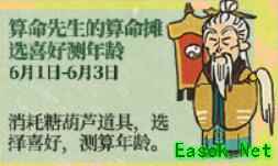 二、作用介绍 6月1日-6月3日,消耗糖葫芦道具可在州府-公告处与算命先生选择喜好、测算年龄。