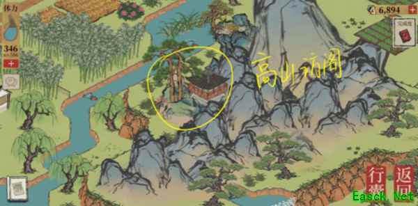 《江南百景图》高山访阁位置高山访阁位置: 1、高山访阁,顾名思义,就是高山旁边的阁楼; 2、探险里面只有下图这座高山,所以在旁边的小楼处找字条即可。