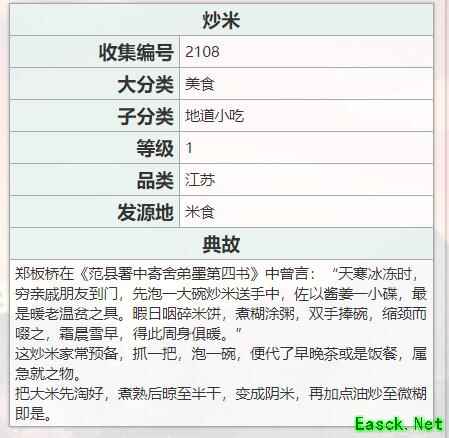 《江湖悠悠》炒米食谱配方配方:稻谷*3、葱 宠物亲密度[极\绝\神]:40\48\60 售价[优\极\绝\神]:无\156\234\312